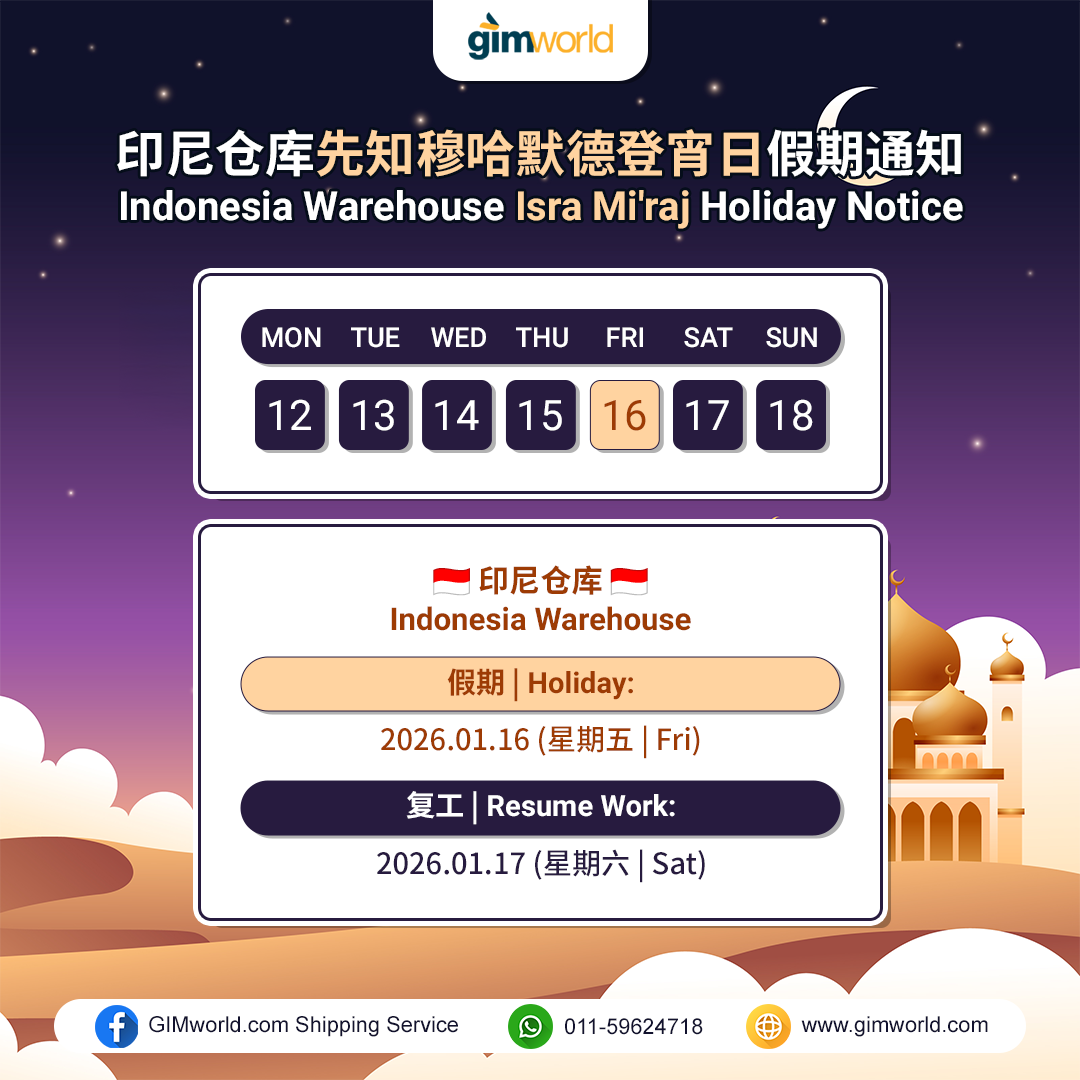 16/01/2026 Indonesia Warehouse Isra Mi'raj Holiday Notice