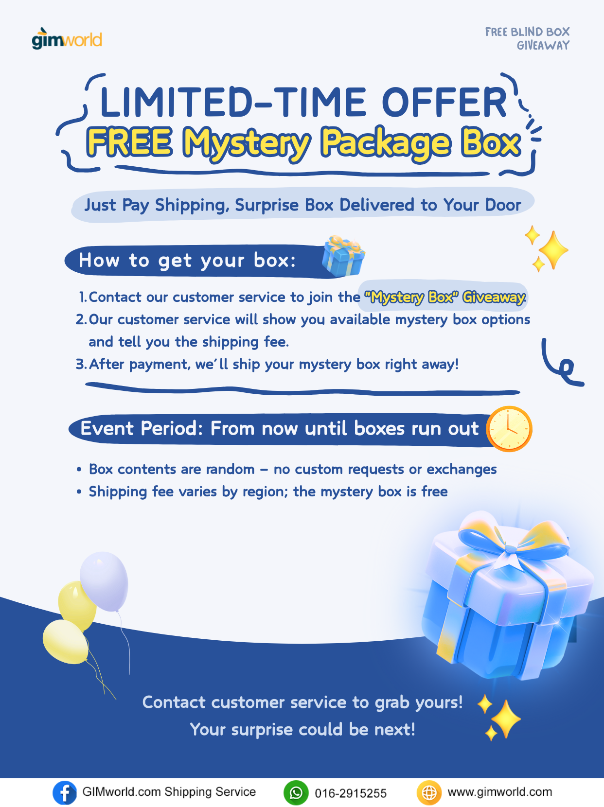We are excited to launch the "Mystery Box" limited-time offer! Simply pay the shipping fee to receive a randomly selected mystery package. Each box contains physical products or other practical items, all designed to add a touch of unexpected surprise to your day!