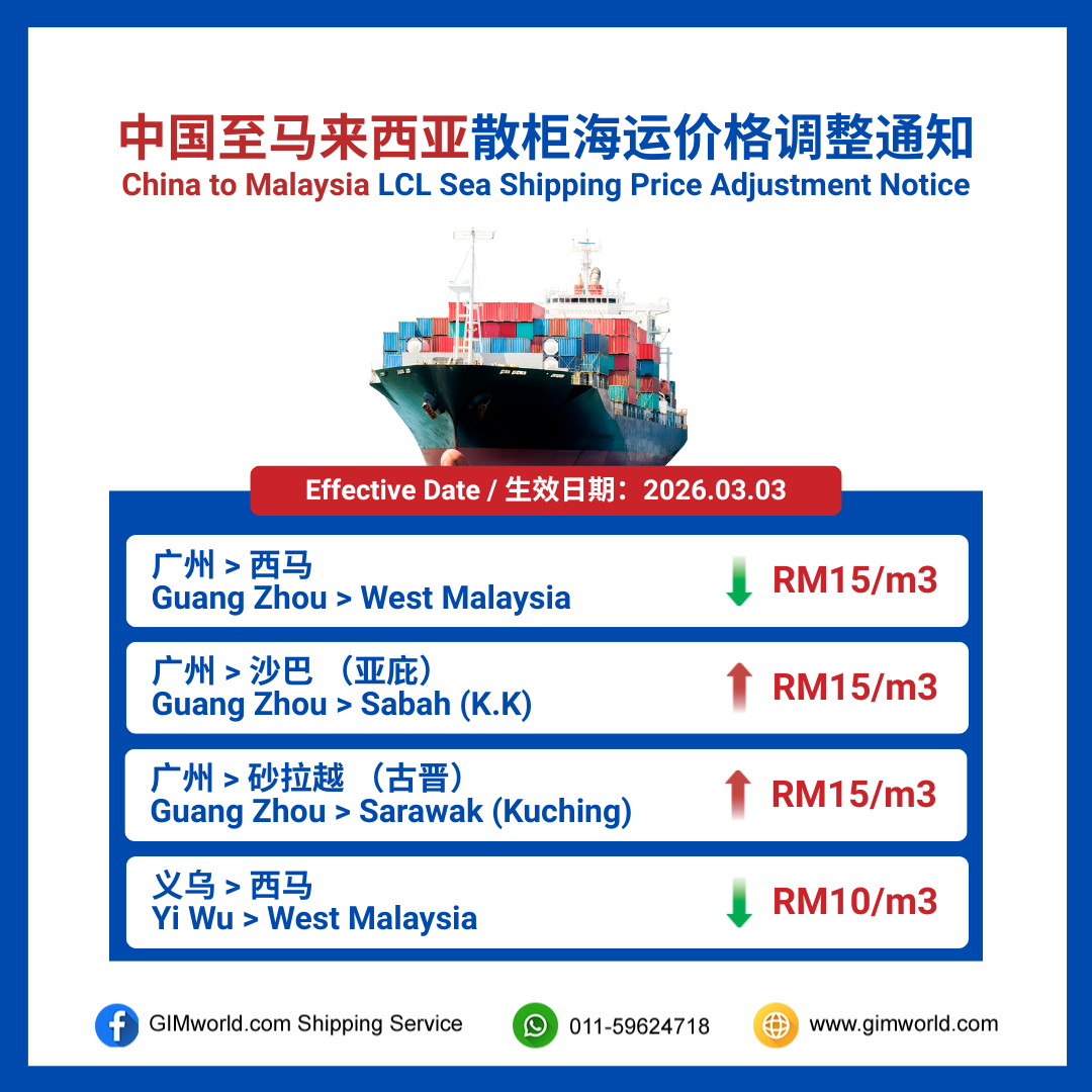 | 03/03/2026 China to Malaysia LCL Sea Shipping Price Adjustment Notice