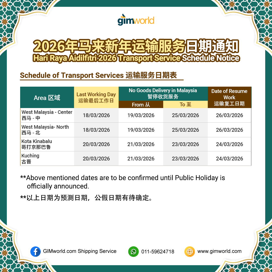 | Goods Arrangement Before Hari Raya Aidilfitri 2026 Notice