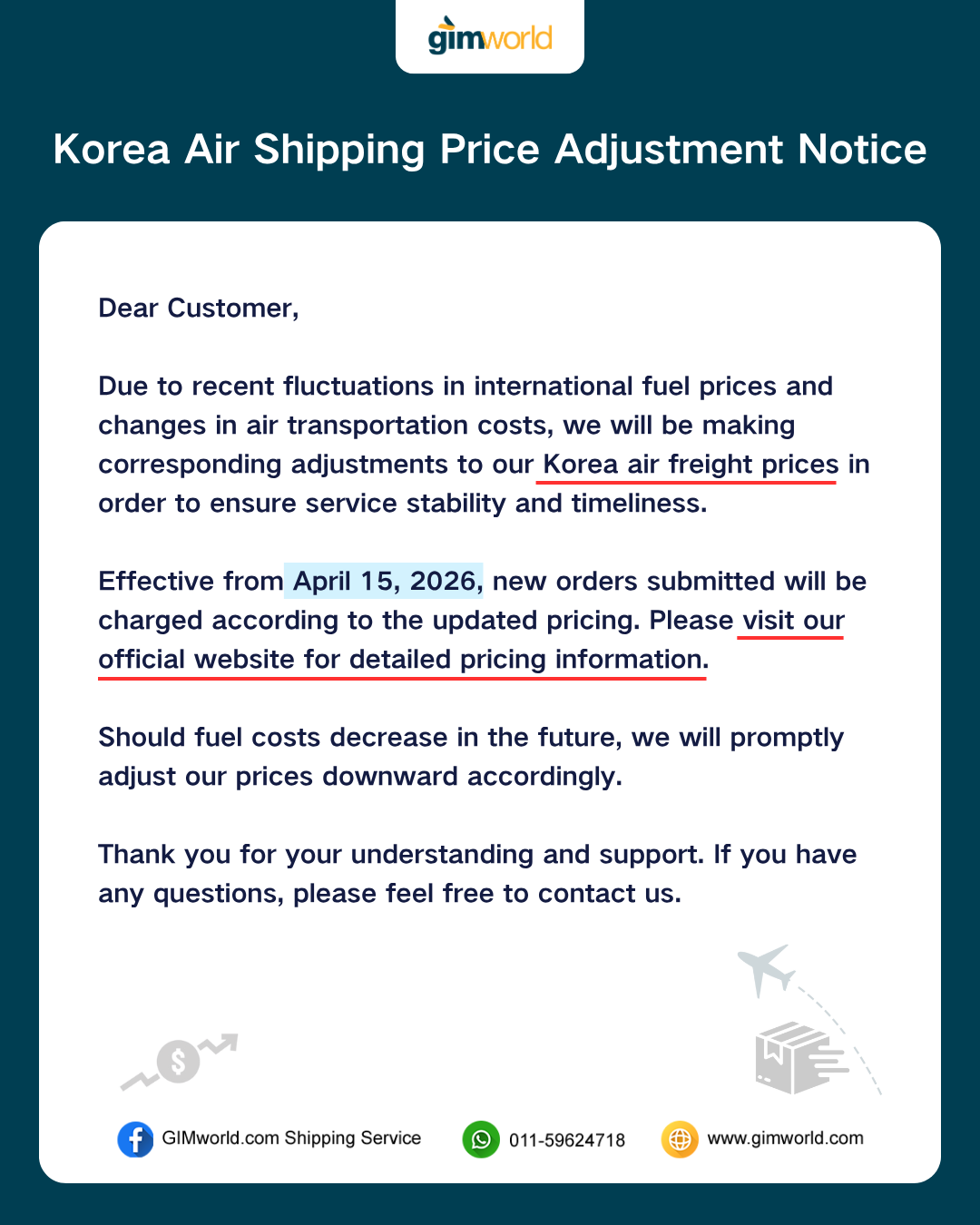 | 15/04/2026 Korea Air Shipping Price Adjustment Notice