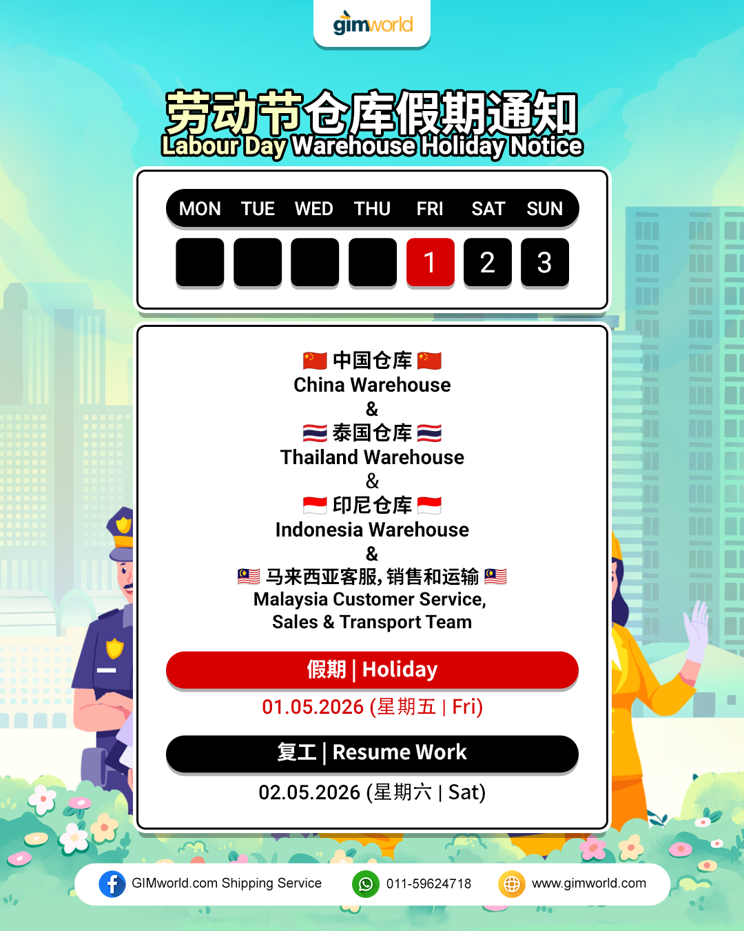 01/05/2026 Labour Day Warehouse Holiday Notice